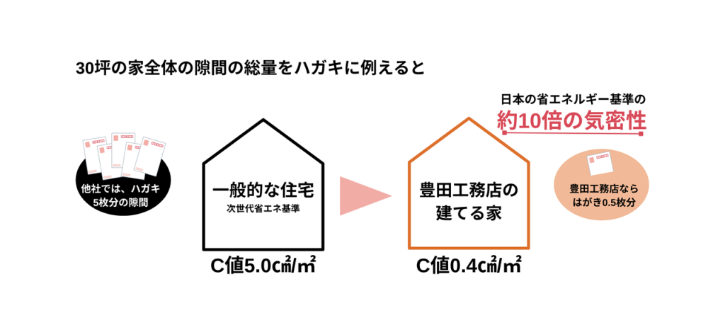 ※豊田工務店の気密性能基準は「C値0.40c㎡/㎡以下」です。