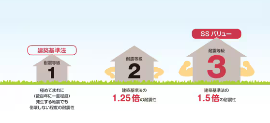 当社では、耐震等級3級を実現し、万が一の耐震保証も付いた高性能工法の「スーパーストロング構造体バリュー」を標準化とし、地震に強い家づくりを実現します。