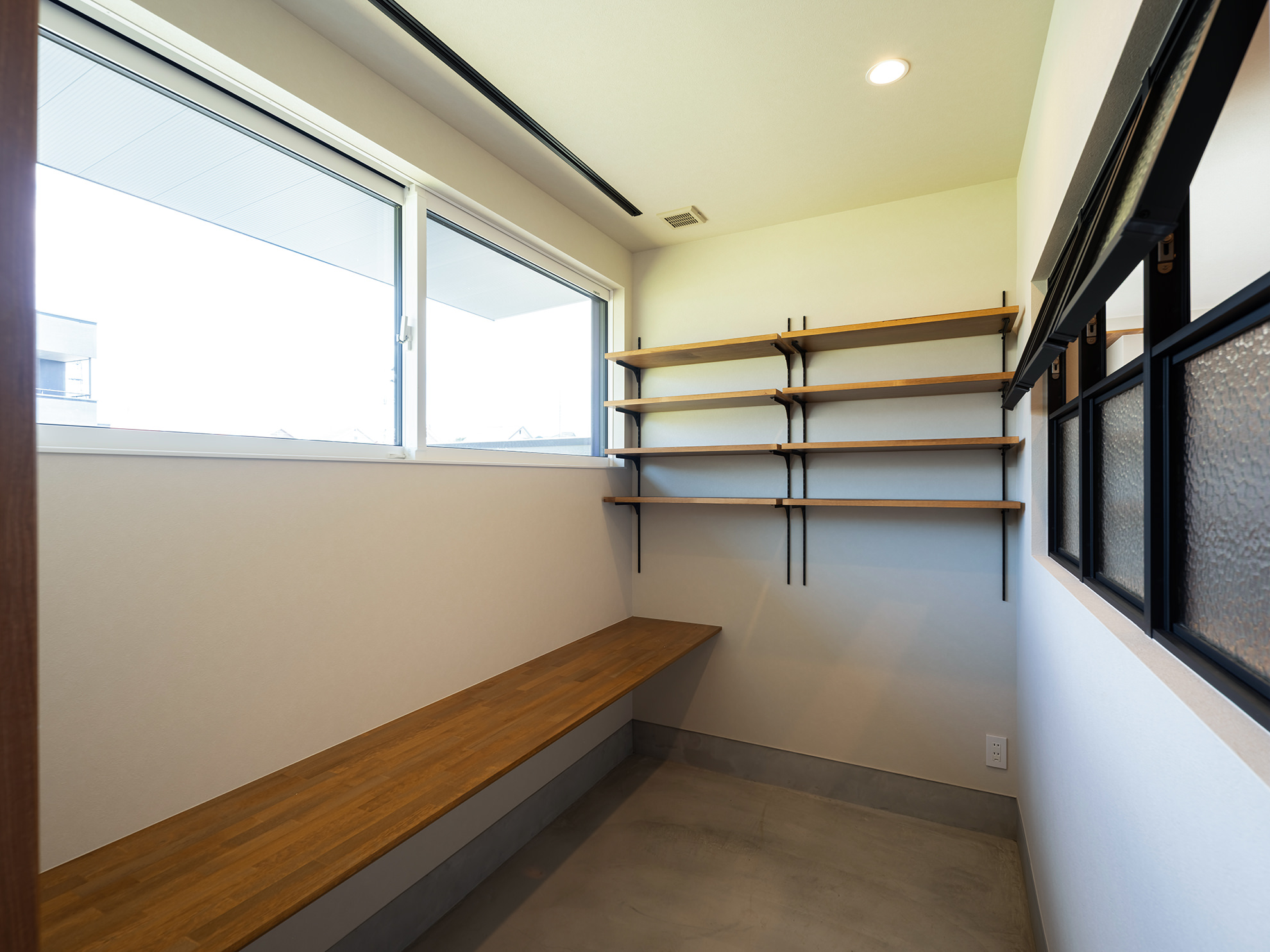 • 家族みんなのアトリエ: 玄関横に設けた広い土間スペースは家族みんなでアートを楽しむためのアトリエ。室内でもあまり汚れることを気にせずに絵を描いたり創作したりできます。